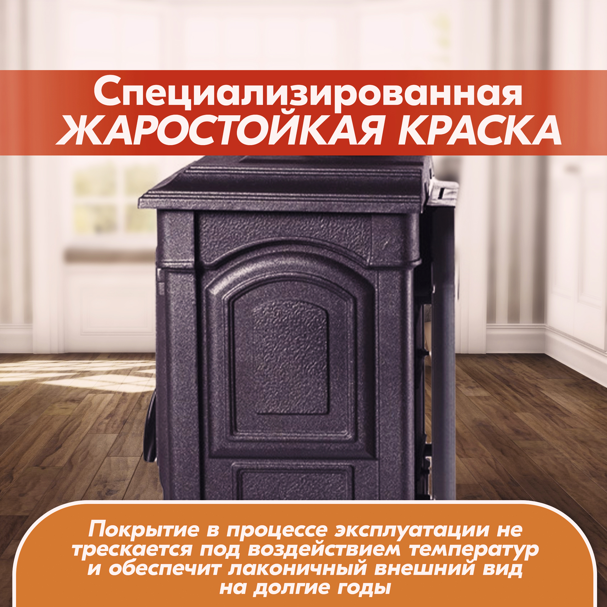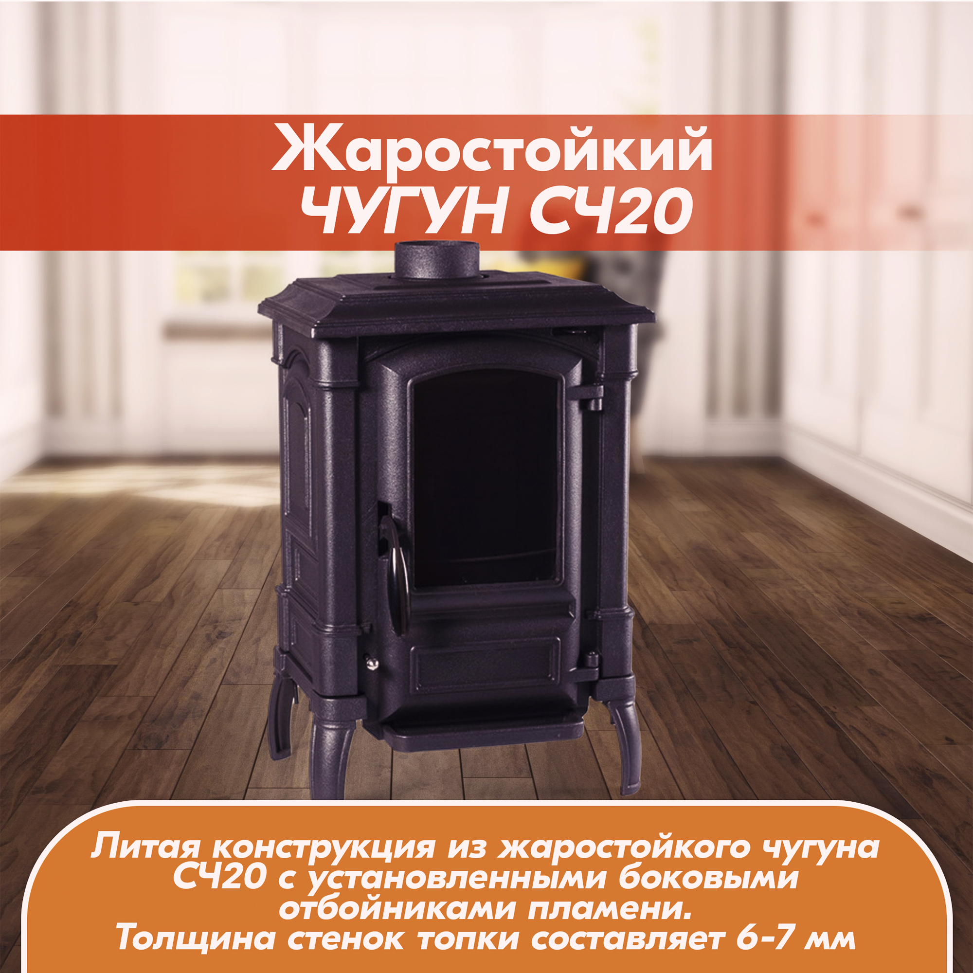 Чугунная конструкция отопительной печи-камина гарантирует прочность, долговечность и износостойкость на долгие годы использования.